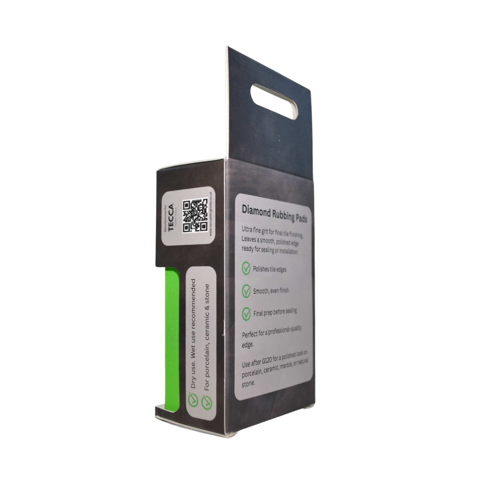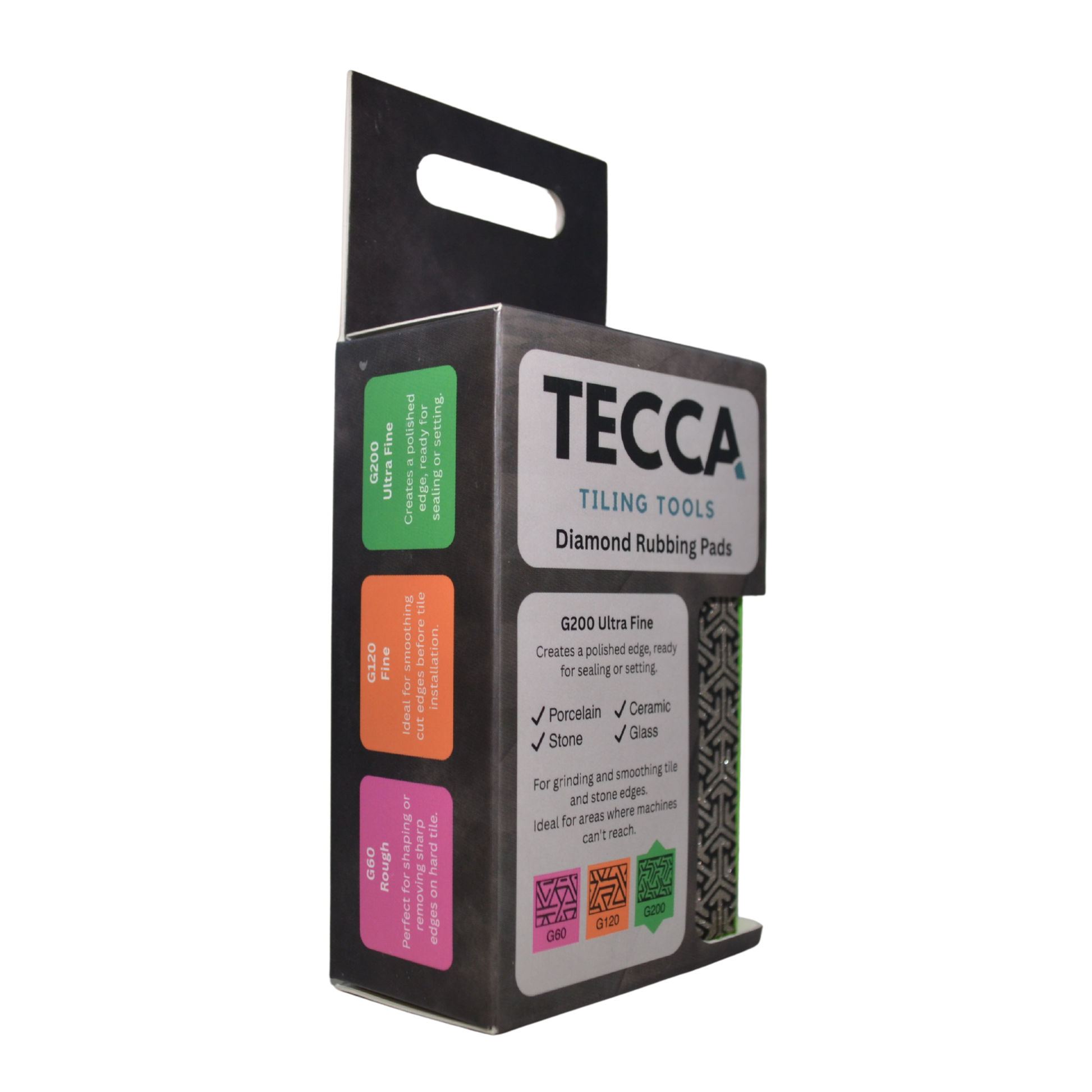 The TECCA G200 Ultra Fine Diamond Rubbing Pad is designed for polishing and finishing tile edges to a smooth, professional standard. As the final stage after shaping and smoothing, this ultra-fine grit pad refines edges so they’re ready for sealing, setting, or left visible with a clean, polished look.